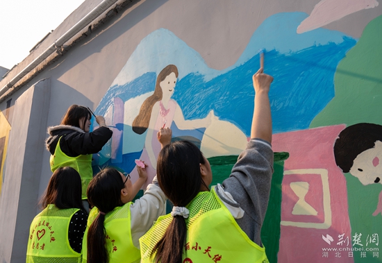 美術(shù)班變志愿隊,社區(qū)環(huán)境大不同。熊駿 攝