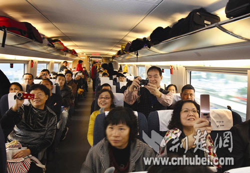 荊楚網(wǎng)消息 (楚天金報(bào)記者譚新杰 通訊員郭金富、劉強(qiáng))12月26日上午9時(shí),三列嶄新的時(shí)速350公里“和諧號(hào)”高速列車從武漢站、長(zhǎng)沙站和廣州北站同時(shí)首發(fā),標(biāo)志著目前世界上運(yùn)營(yíng)速度最快、一次性建成里程最長(zhǎng)的高鐵新干線——武廣客專正式投入運(yùn)營(yíng)。“陸地飛行下廣州,千里南國(guó)一日還”的時(shí)代已經(jīng)到來(lái)。