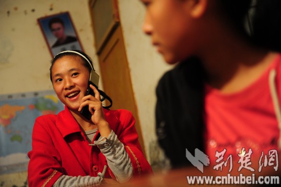 圖為:王玉蘭給老師曹建強(qiáng)打電話(huà)。