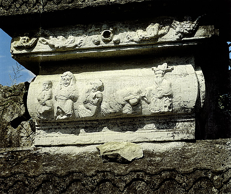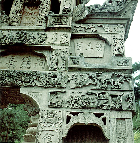 湖北省北有秦嶺東沿的武當(dāng)山、大別山、桐柏山,西接云貴高原,東南為幕阜山脈環(huán)繞,中部是寬闊的江漢平原。山區(qū)產(chǎn)石料,為石雕提供了豐富的用材;平原燒泥土制磚瓦,鐫以圖案美化建筑。民間石雕、磚雕分布,與地形大體一致。?凳耦}材廣泛,大致分為日常生活、倫理教化、神話傳說、戲文故事、花鳥蟲魚、書文楹聯(lián)六類。